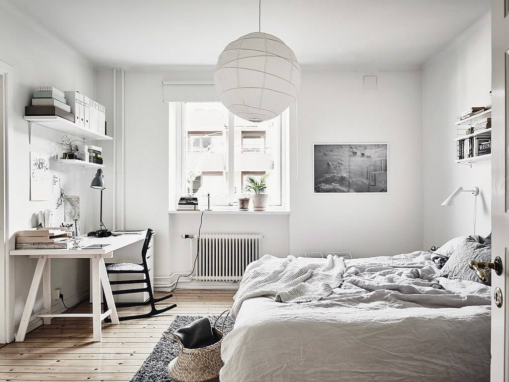 Скандинавский стиль, который сегодня находится на гребне популярности, часто выбирают для дизайна подростковых спален. При этом для оформления помещения предпочтение чаще всего отдается белому цвету. Это решение вполне оправданно, поскольку такая колористика «работает» на расширение пространства и комната выглядит просторней и светлее. Главное – подобрать теплый оттенок белого цвета, и тогда интерьер будет выглядеть не только светлым, но и уютным.