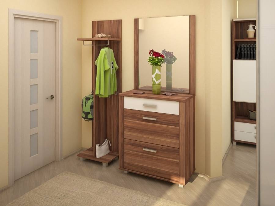 Вешалки стойки нежелательны. Многие думают, что они компактные. На самом деле, если повесить на них верхнюю одежду, можно заметить, что она занимает немало места. Лучше монтировать вешалки для верхней одежды в шкаф-купе. Лучше выбирать мебель светлых тонов, но желательно, чтобы ее нижний уровень был темным. Благодаря этому, грязь будет незаметной. Главное требование – компактность, так что антресоли и большие шкафы не подойдут.