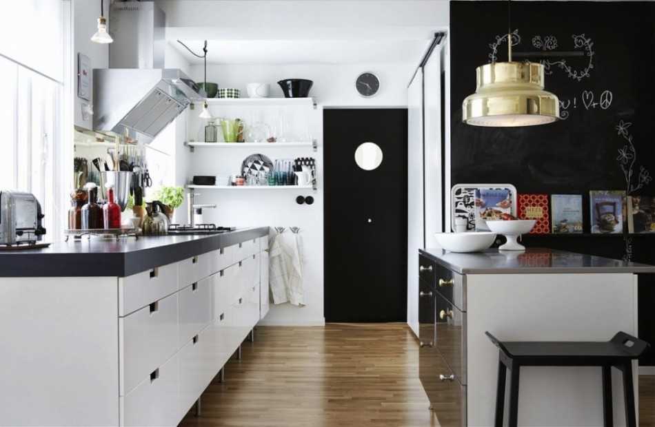 Черные интерьеры – редкость, ведь они требуют пространства и света, чтобы комната не была слишком мрачной. Но зато они всегда смотрятся дорого и благородно, и 20 кв.м. вполне достаточно, чтобы убедиться в этом на практике. Черные акриловые фасады дополнят современные стили, черные каменные столешницы – безупречная классика, а черная техника – настоящий футуристический шик.