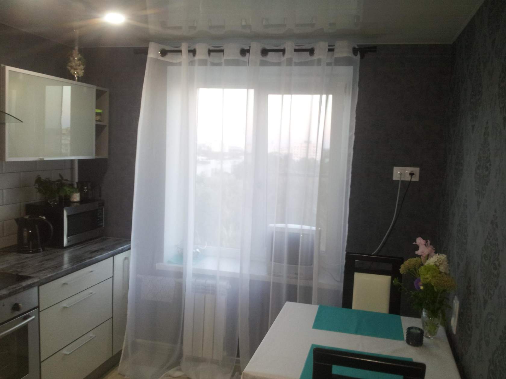 - Если в хрущевской квартире кухонное помещение имеет выход на балкон, то увеличить метраж можно за счет него, но обязательно проведя утепление. Балконное пространство будет выступать в роли столовой зоны.