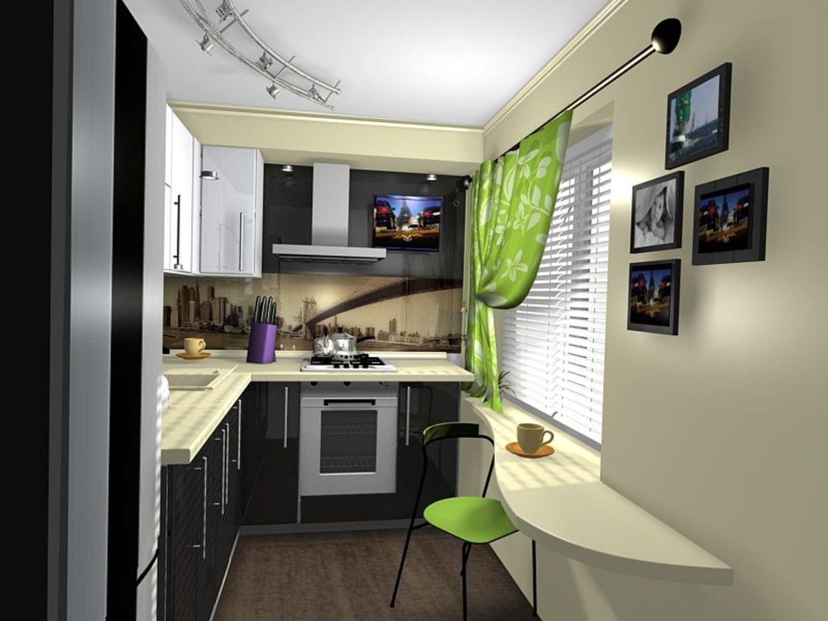 Совет: при П-образной или параллельной планировке вместо полноценного стола можно использовать подоконник. Установив его чуть выше и шире, выйдет отличное уютное место для зоны употребления пищи.