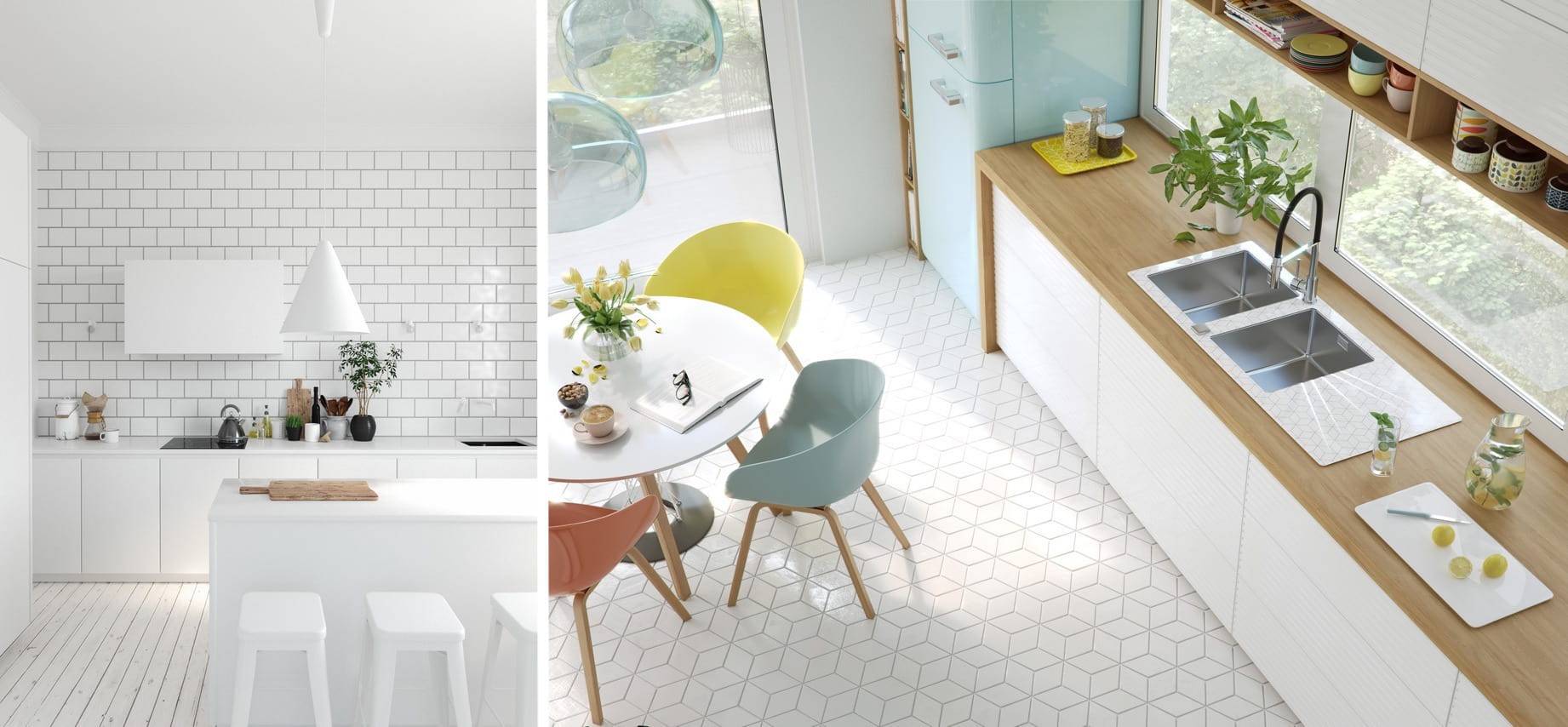 Размер плитки имеет значение. Стоит помнить, что большие плитки на полу будут отлично работать на маленькой кухне. Они добавят пространства и в то же время модный эффект.