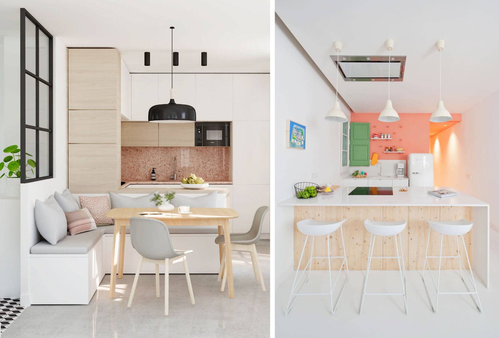 Белоснежные скандинавские маленькие кухни уже несколько приелись. Добавление новых элементов в холодный нордический интерьер позволило реанимировать этот стиль и взглянуть на него по-новому.