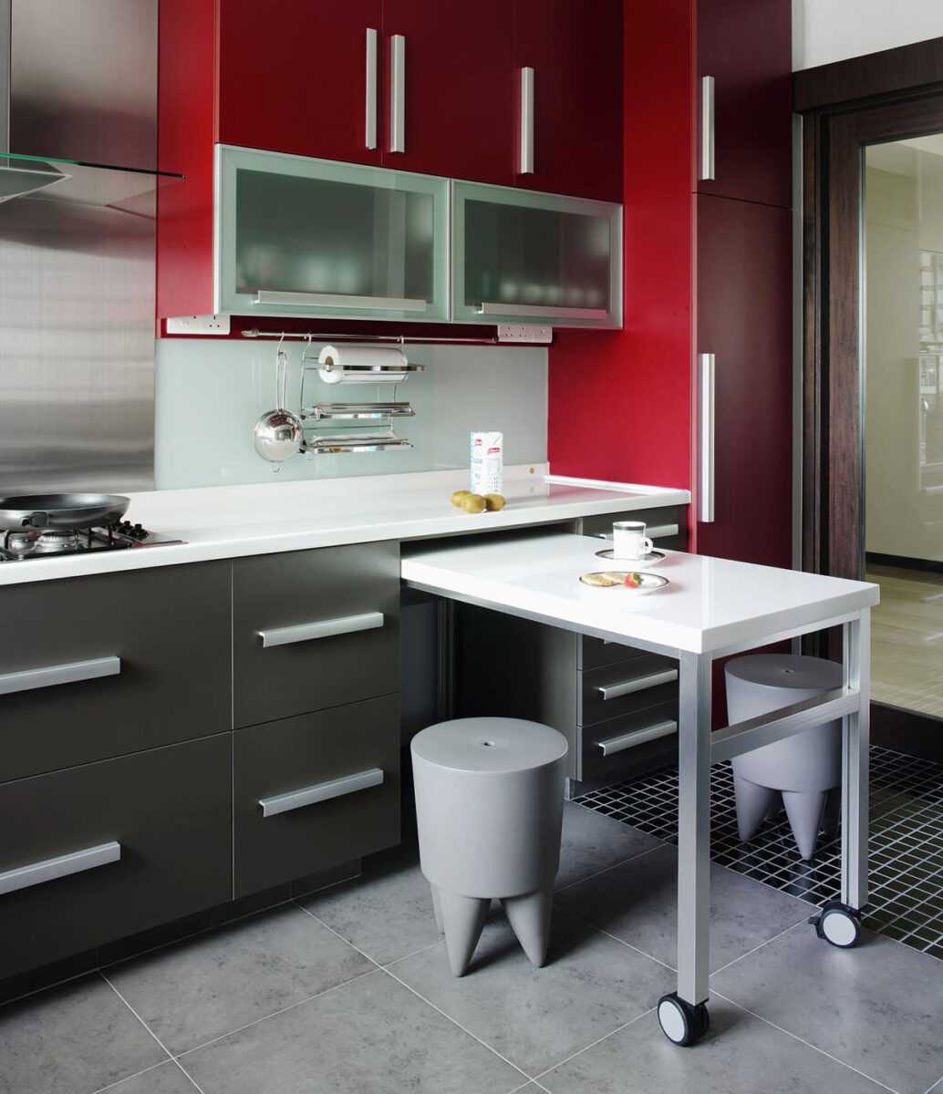 Возможность разместить габаритную мебель. Из-за расширения пространства у вас появится возможность вместить на кухне стильный буфет или холодильник побольше.
