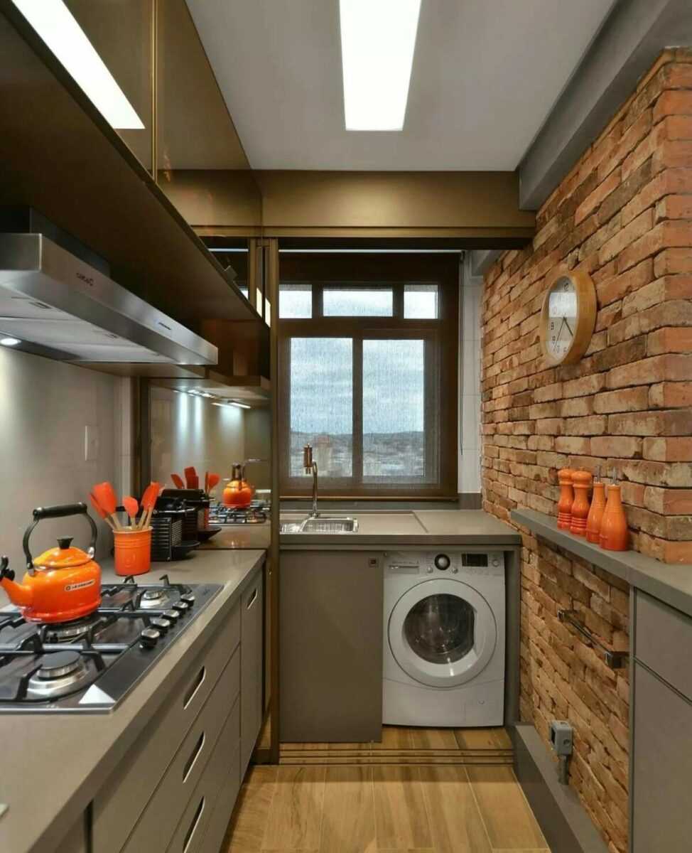 Планировка кухонной зоны может быть различной. Самым распространенным вариантом является линейная, когда вся техника выстроена в один ряд.
