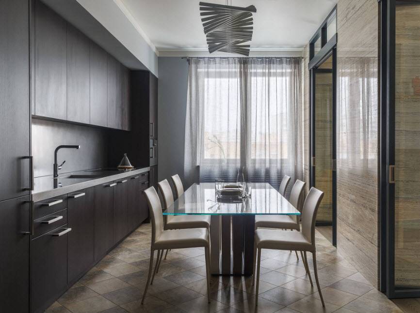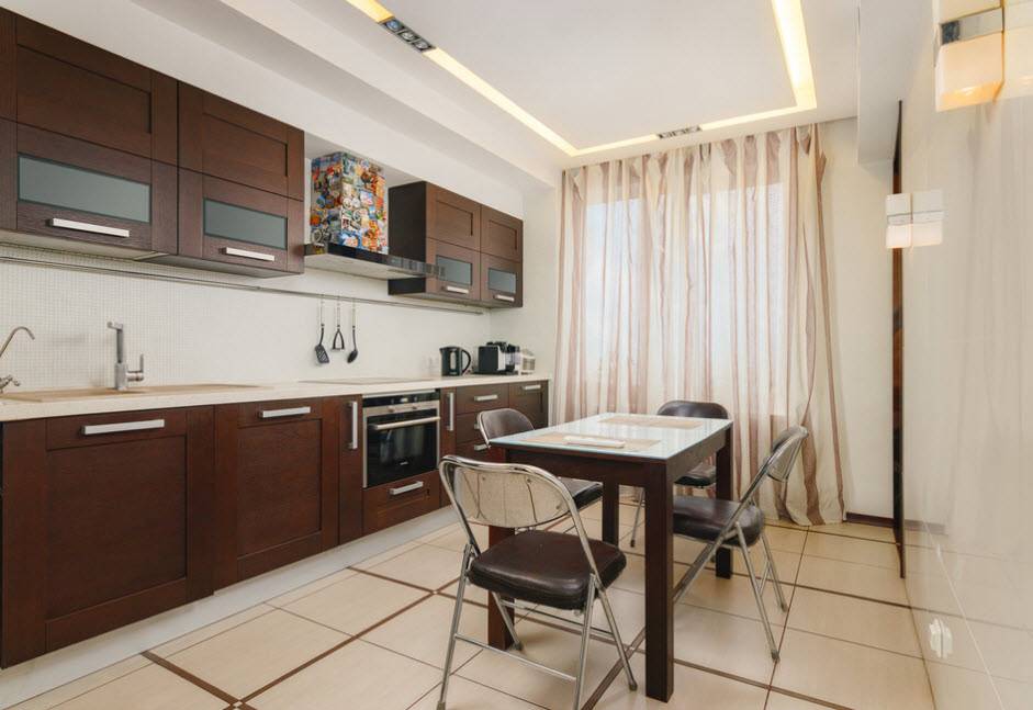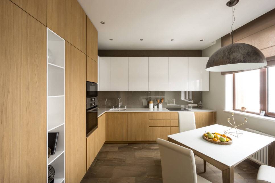 - если неправильно оформить такую кухню, она будет казаться либо маленькой, либо совершенно лишенной уюта, почти нежилой;