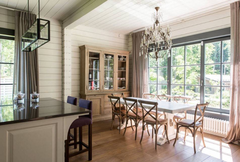 Правильно подойдя к выбору стиля, кухня-столовая в загородном доме способна превратиться в настоящий шедевр, радующий, как домочадцев, так и их гостей.
