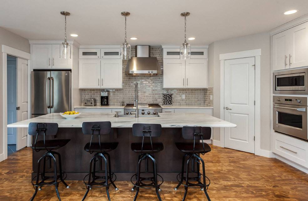 - Белый цвет. Белая кухня всегда в моде. Белые фасады визуально расширяют пространство, придают интерьеру легкости. Из минусов – может быть проблематичен уход.