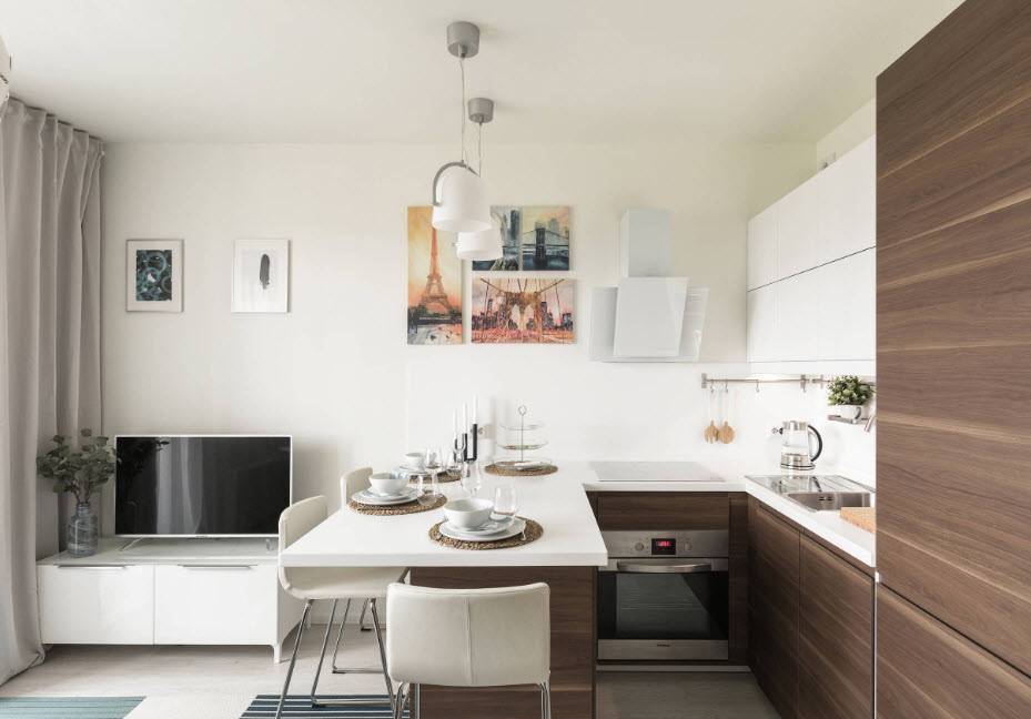 - можно сделать на кухне зоны, которым в маленьком помещении места просто не найдется;