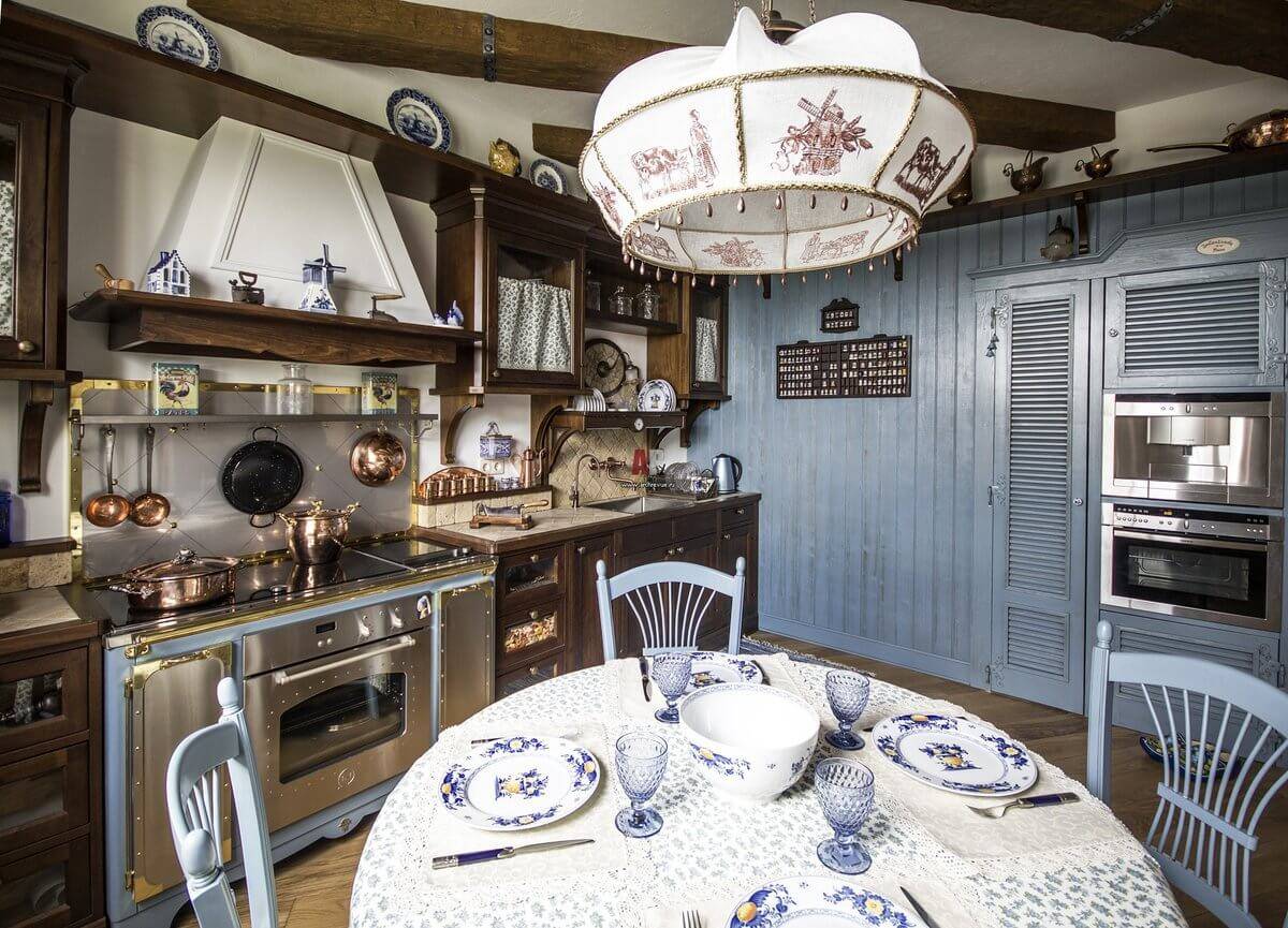 Стильная и красивая кухня в кантри-стилистике с дизайнерскими находками