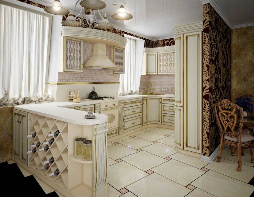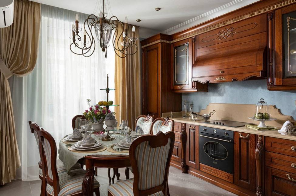 Ремонт кухни в классическом стиле: отделочные материалы и текстиль