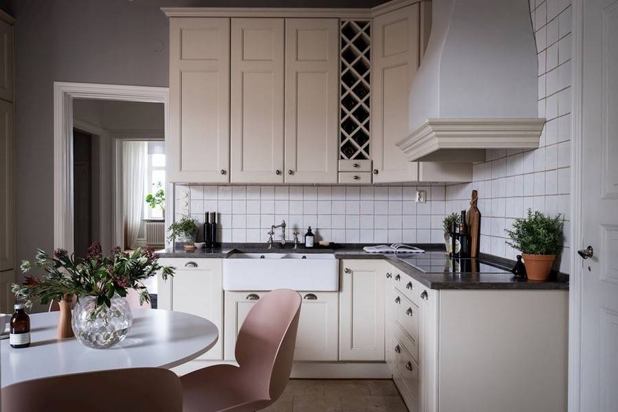 Классика никогда не выйдет из моды и отлично подходит для нестандартных, совмещенных и маленьких кухонь.