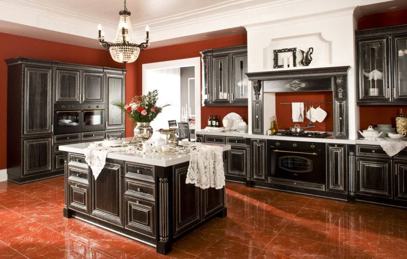 Оптимальным решением станет использование темного серного цвета или темного синего. Помните, что черный цвет является достаточно сложным решением. Один неверный шаг может превратить вашу кухню из классической в готическую.