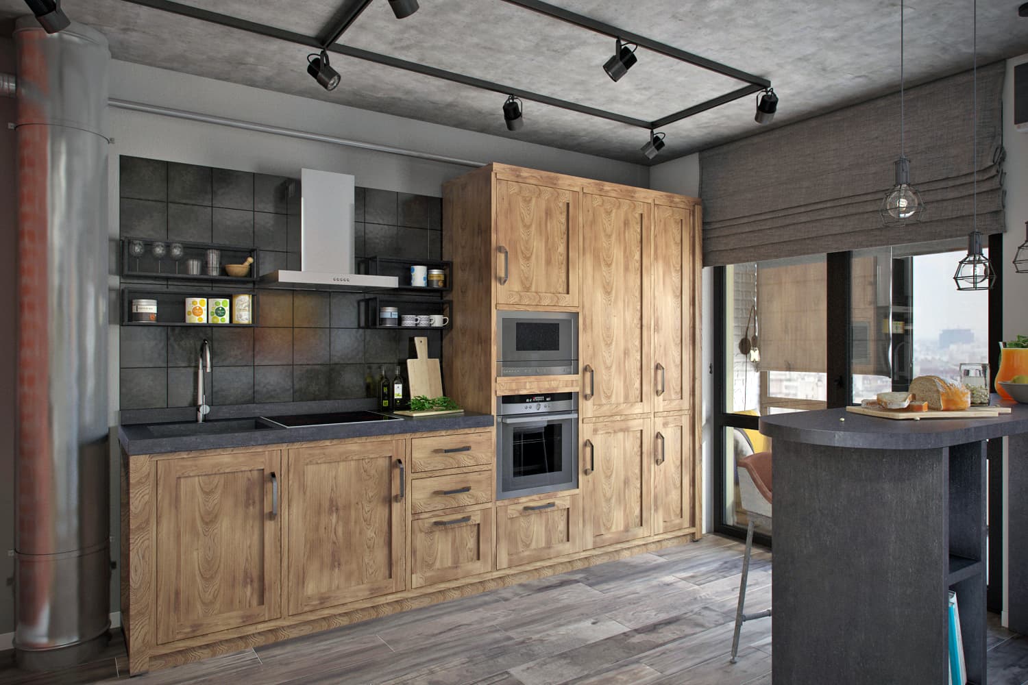 Плюсы деревянной мебели для кухни в стиле лофт: