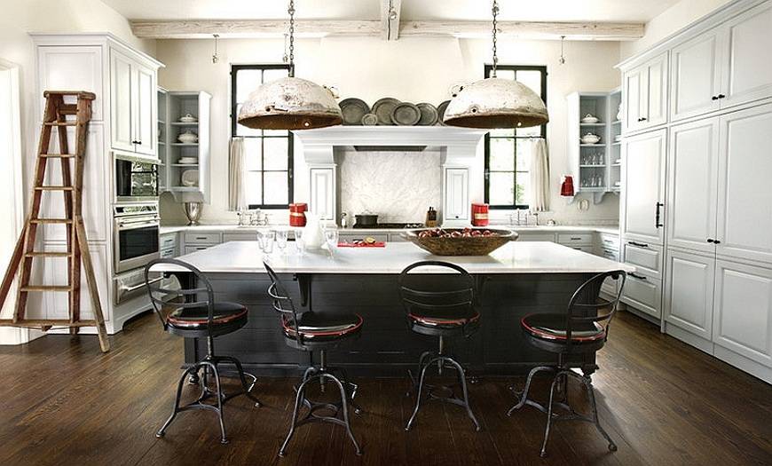 Разнообразное освещение. Ввиду многих налагающихся друг на друга факторов – тёмных цветов, грубой фактуры, отсутствия больших световых проёмов (что характерно для чердачных и производственных помещений), в кухне оказывается довольно темно. Отсюда необходимость большого количества источников света разного уровня: общего, местного, заполняющего, акцентного, подсветки.