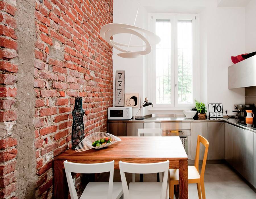 Если площадь кухни в квартире маленькая, элементы стиля лофт придадут ему черты богемного шика и легкой небрежности.