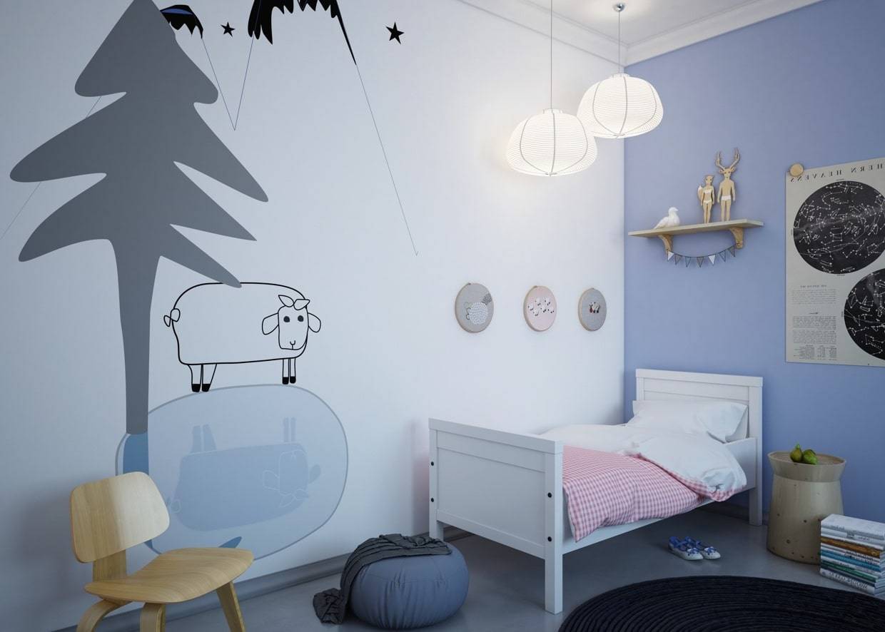 Если дети разнополые, то не стоит ограничиваться традиционными цветовыми гаммами для мальчиков и девочек. Лучше подобрать нейтральные оттенки, а детям предложить самостоятельно оформить свою часть комнаты при помощи съемных интерьерных наклеек и оригинальных предметов декора.