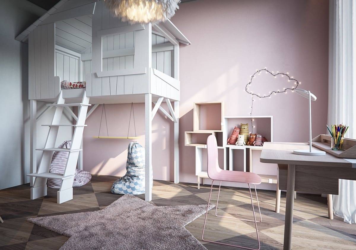 Детская спальня, обустроенная в сказочном стиле, станет любимым местом для малышки, которая любит фантазировать и представлять себя героиней одной из сказок.