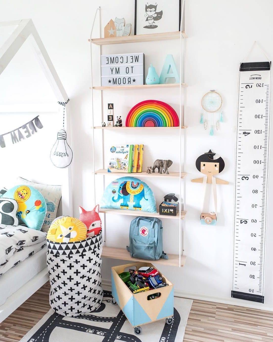 Стеллажи для хранения мелких вещей могут быть разными. Для мальчиков они могут имитировать космический корабль, автомобиль или ракету, все зависит от вашей фантазии.