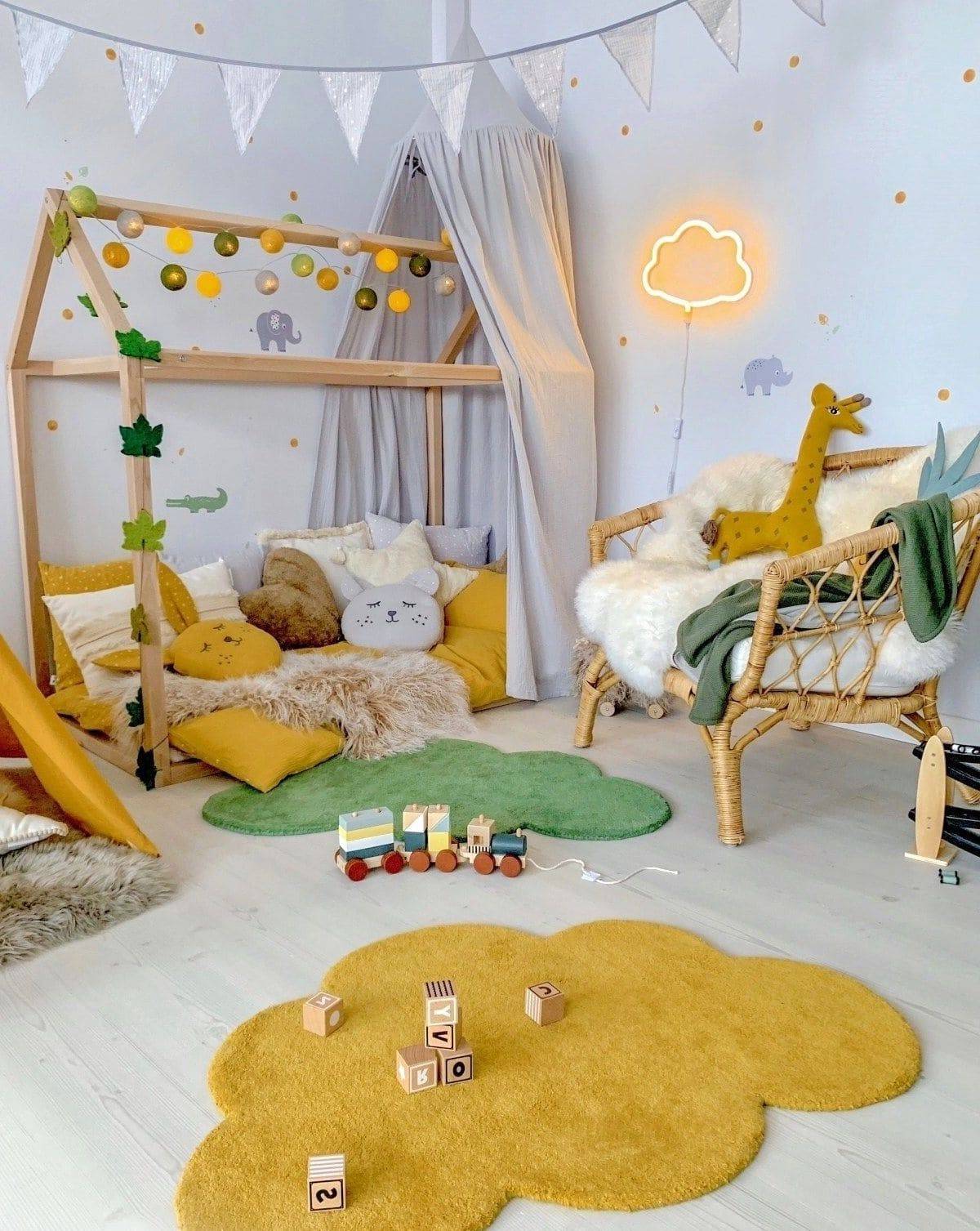Мобильная игровая зона (палатка или надувной домик), где любит проводить время малыш, является отличным вариантом для игр, ведь эти предметы можно при необходимости убрать или перенести в другую комнату.