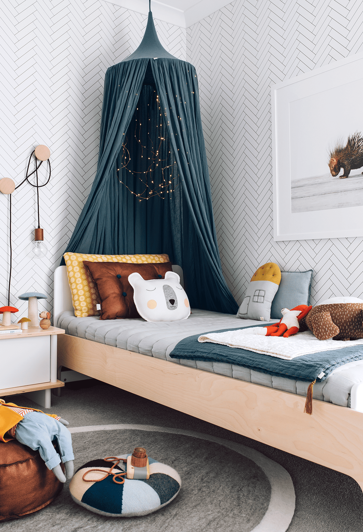 Вашему малышу понравится кровать для «большого ребенка», и вы можете сделать его сон еще более особенным, если повесите балдахин. Вы можете выбрать специальные навесы для комнаты малышей с голубым небом, звездами, радугой или «принцессой Диснея».