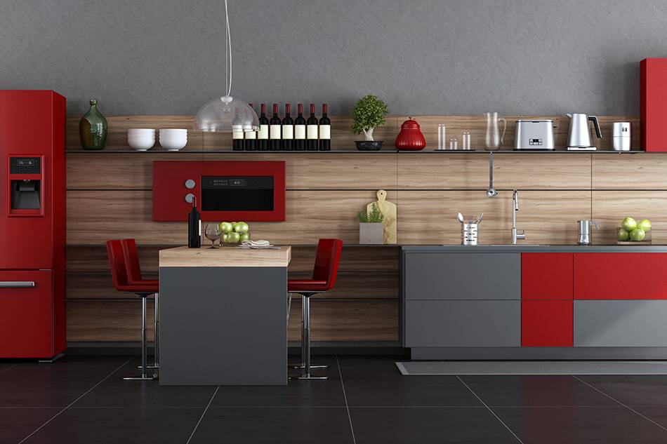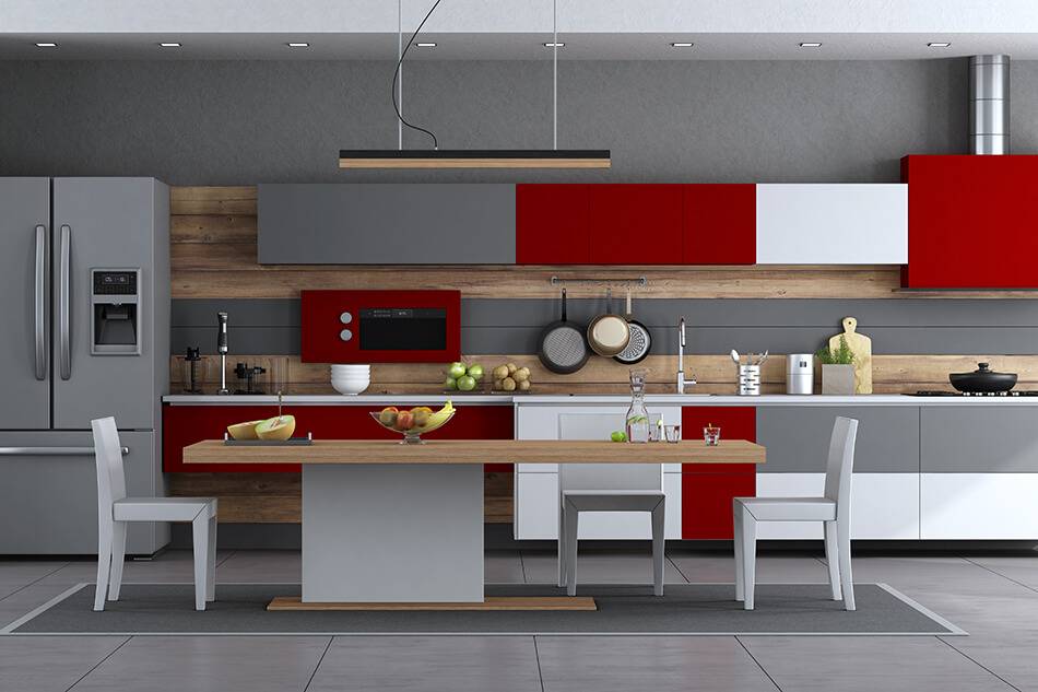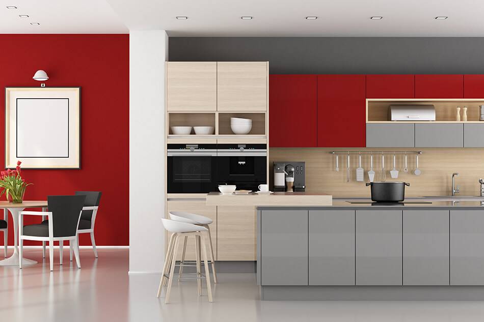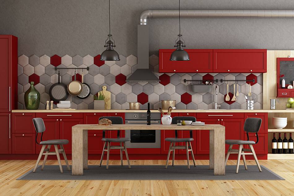 Она зарядит вас энергией и обратит на себя внимание гостей. Если вы не готовы к слишком вызывающей кухне, используйте красный цвет только в качестве ярких акцентов