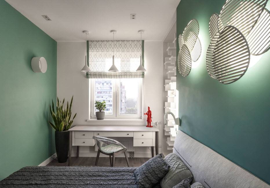 Каких-либо особых секретов здесь нет: чем меньше комната, тем проще дизайн. К примеру, классические направления стилистики здесь воплотить в жизнь попросту не удастся: на нескольких квадратных метрах нет места для массивной люстры с канделябром, шикарной кровати на резных ножках, массивному потолку с лепниной и золотым узором.
