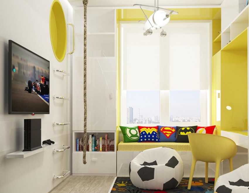 Специалисты советуют подобрать максимально функциональную мебель простых форм. Основная цветовая гамма помещения белая, с яркими цветовыми акцентами.