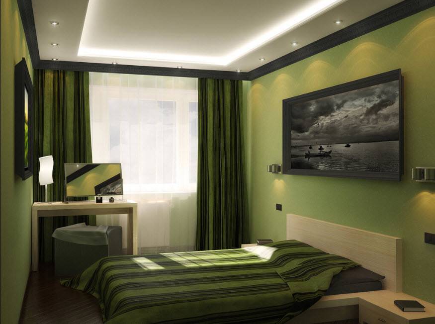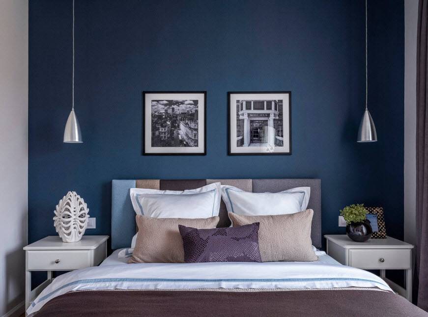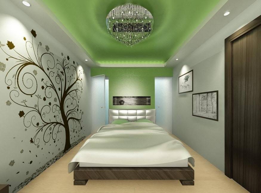 - удачной расстановки акцентов, выделяя спальное место (чаще у изголовья либо выделяя одну из стен);