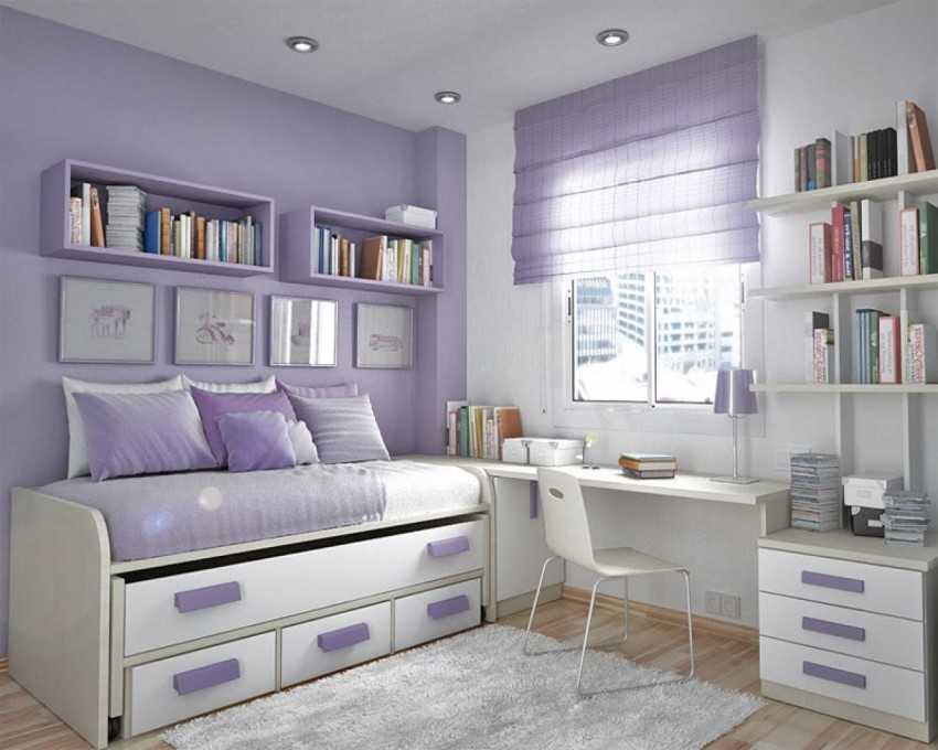 Для хранения вещей целесообразно также поставить шкаф-купе. Для книг лучше установить стеллажи.