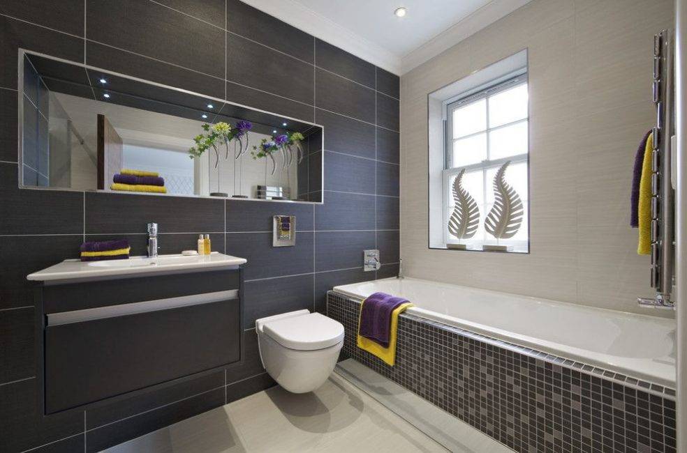 Дизайнеры рекомендуют использовать для оформления интерьера ванной и туалета не более трех цветов. Как вариант — взять разные оттенки одного цвета. В маленьких санузлах лучше не брать плитку с яркими узорами и сюжетами