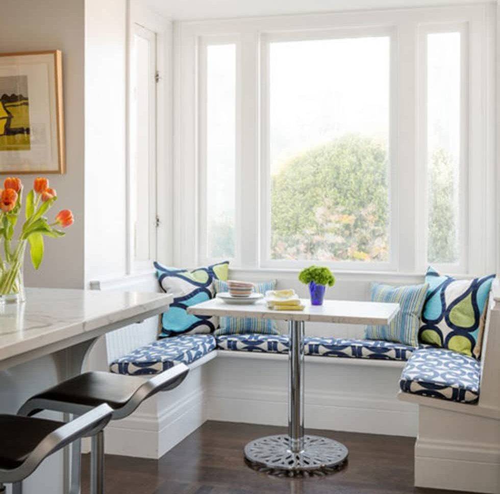 Если пространство помещения очень небольшое, обеденную зону помещают прямо у окна