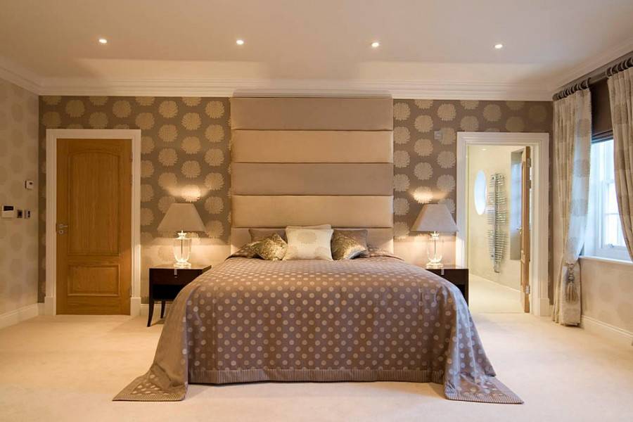 В современных стилях обои для спальни используются нечасто. Для оформления стен актуальны жидкие обои, краска и панели. Но когда необходимы орнаменты на стене, обои справятся с этим лучше всех.