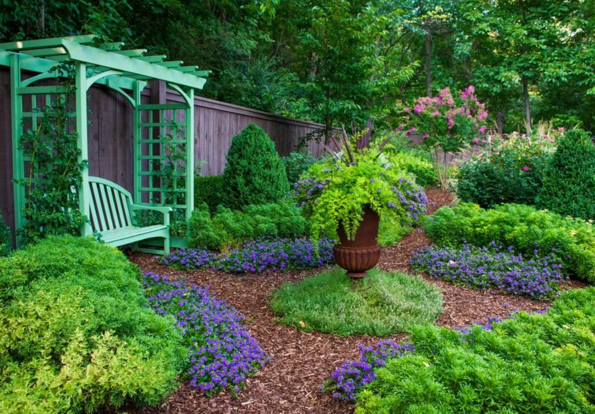 При высадке растений нужно обращать внимание на сочетаемость их вида (можно посмотреть по фото). Правильное распределение с выделением акцентов могут визуально расширить участок при малом пространстве