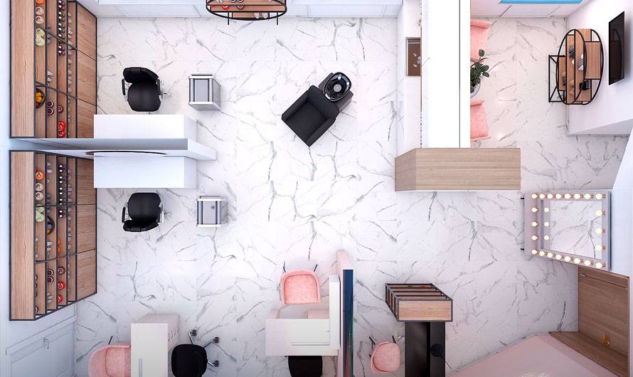 При создании салонов красоты дизайнеры следуют определенным правилам планировки, стараясь использовать оригинальные идеи декорирования.