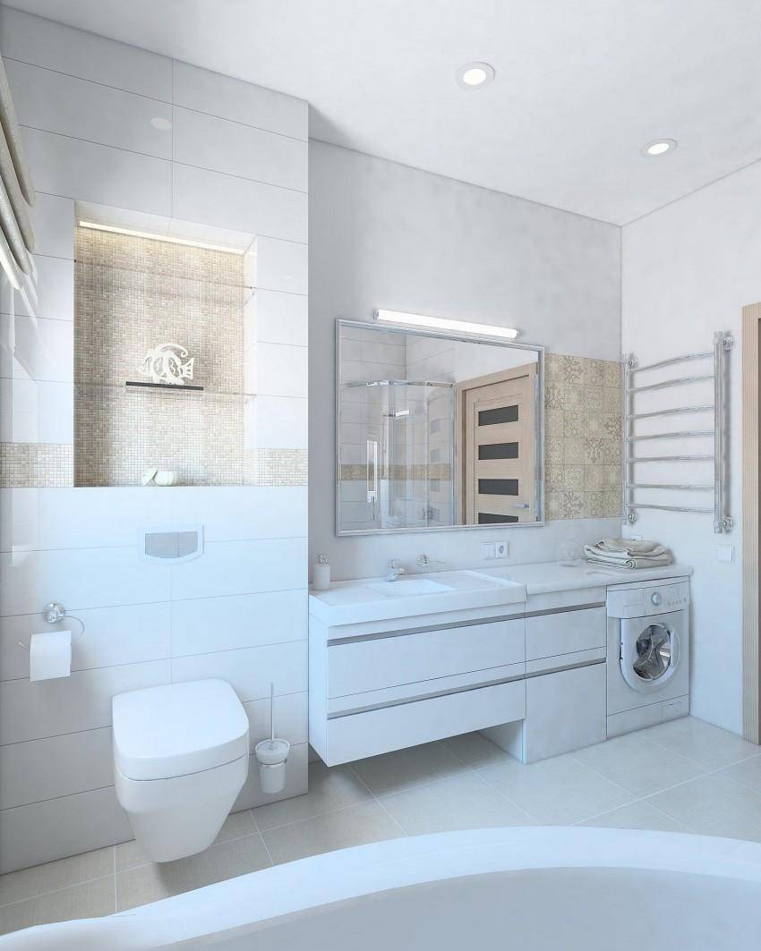 - Смещение. Подобная техника позволяет с точностью сымитировать кирпичную стену. Верхние ряды плитки будут располагаться посередине последующего элемента. На фото отделки ванной плиткой представлен вариант для оформления интерьерного пространства;