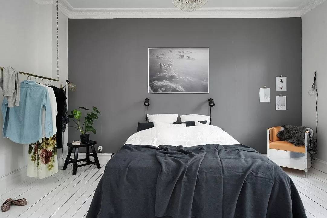 Серый цвет считается нейтральным цветом. Средний цвет между белым и черным, он смягчает контрасты и придает мягкость интерьеру. Серый интерьер спальни можно разбавить вкраплениями ярких аксессуаров: желтого, голубого, сиреневого или розового цвета.
