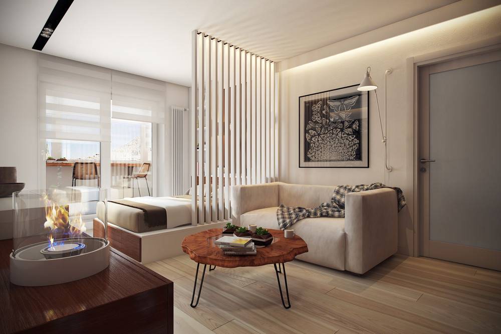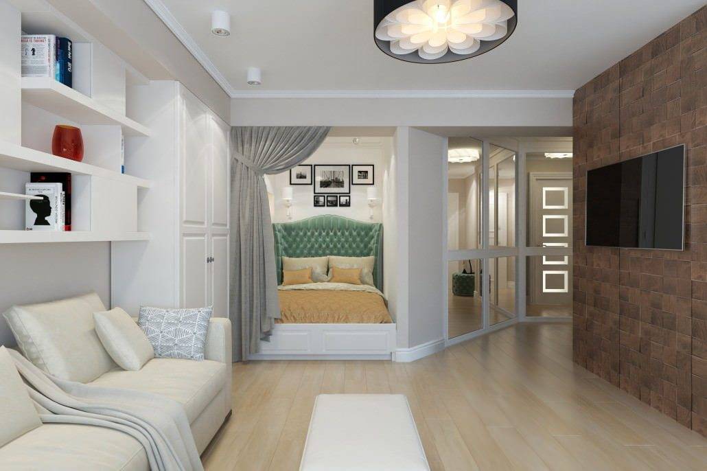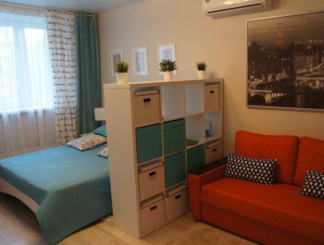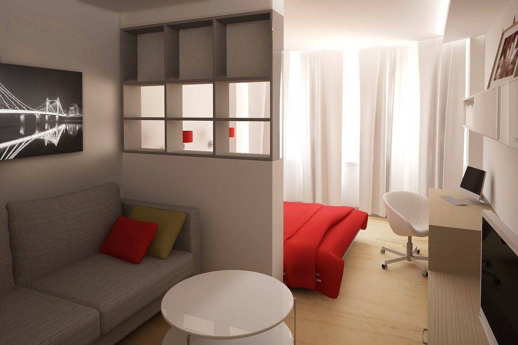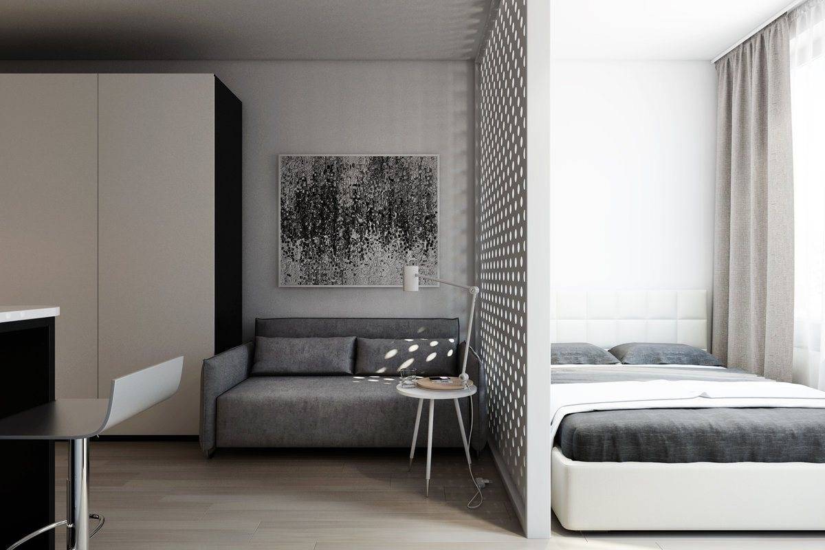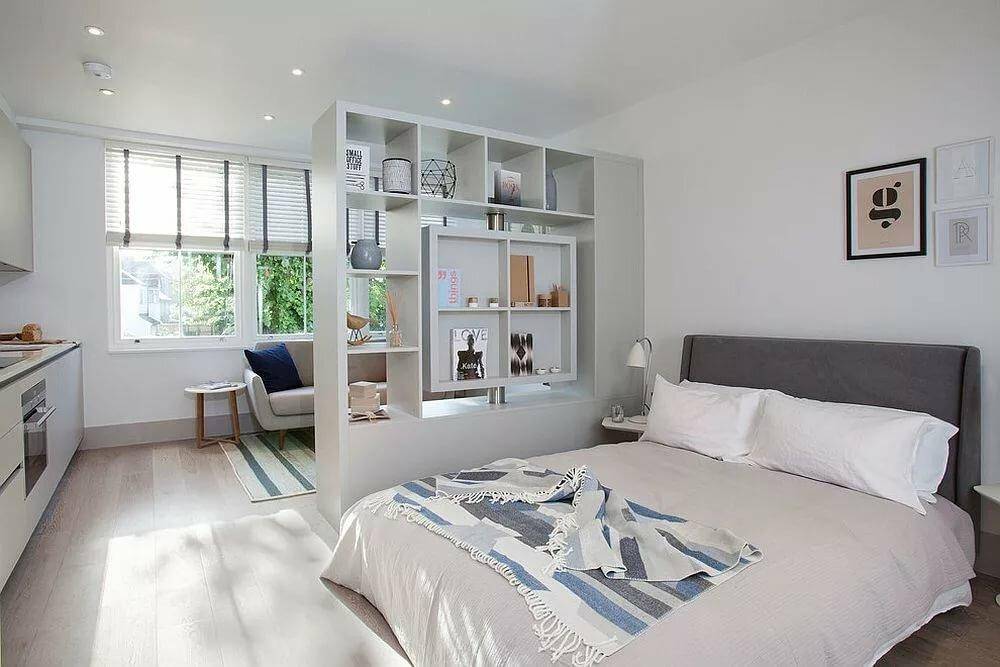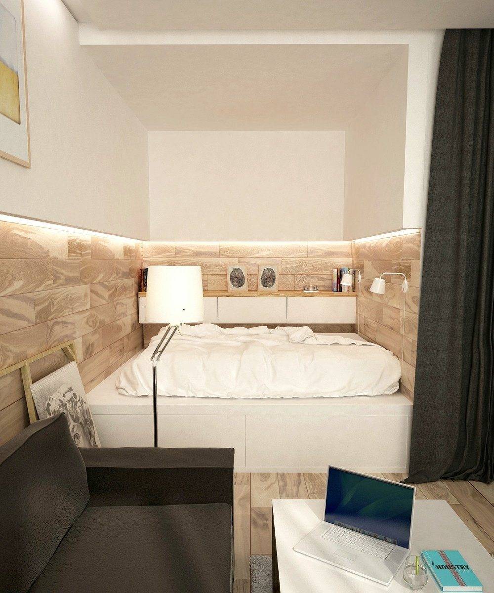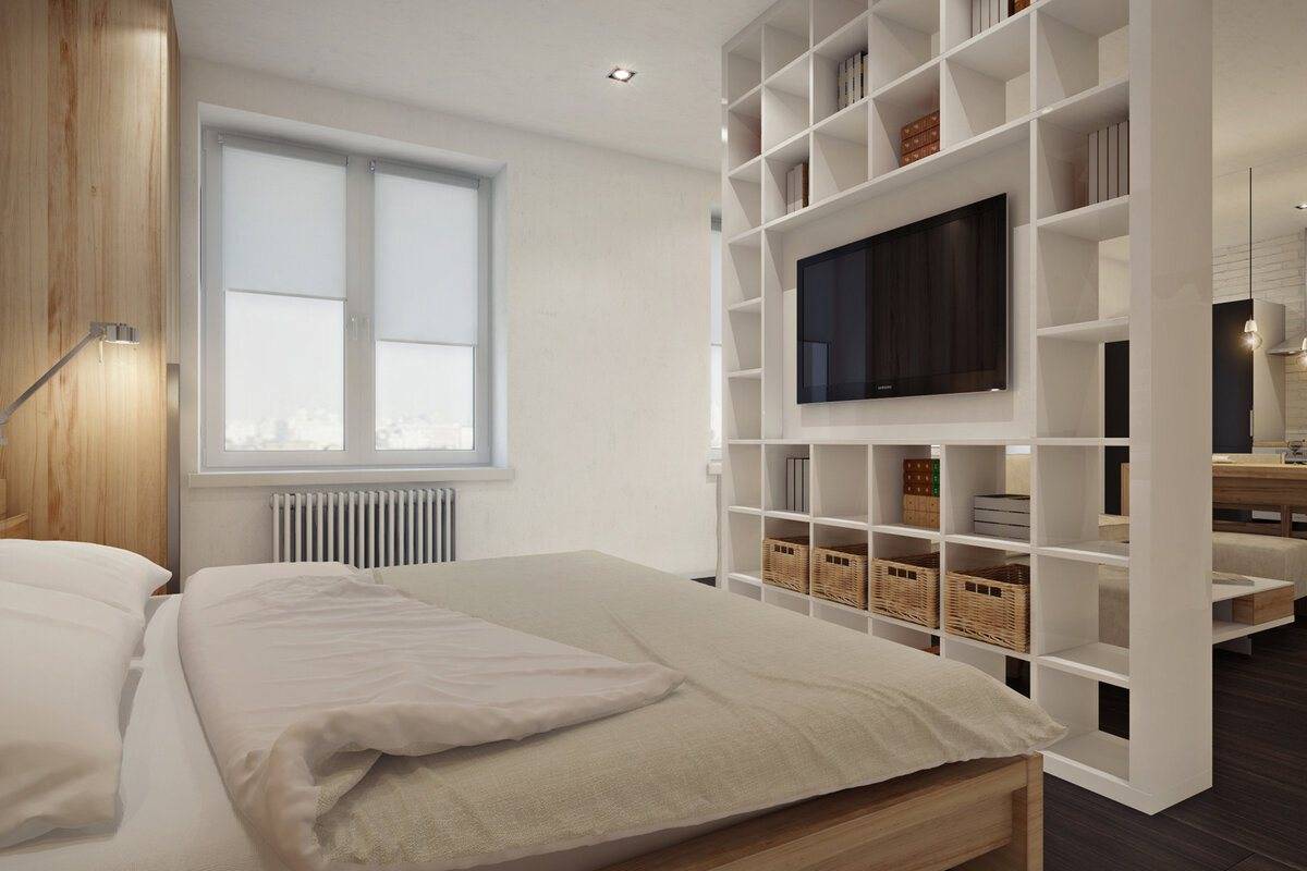 Как видите, даже в маленькой однокомнатной квартире вы можете создать пространство для уютной спальни. Все, что вам нужно сделать, это сохранить символическое разделение на зоны, и эффект будет удовлетворительным. Получите спокойное место для отдыха, а с другой стороны ваша квартира не будет разделена на несколько небольших комнат. Более того, преимущество этой договоренности заключается в том, что вы можем легко изменить интерьер в любое время.
