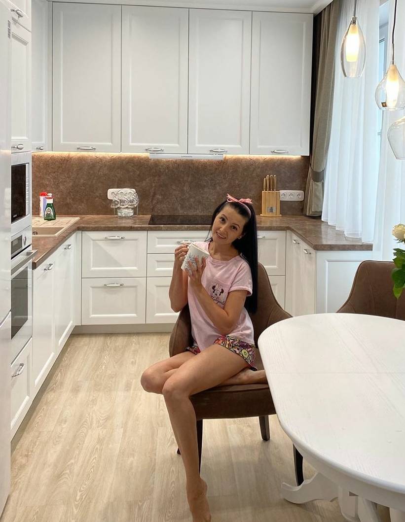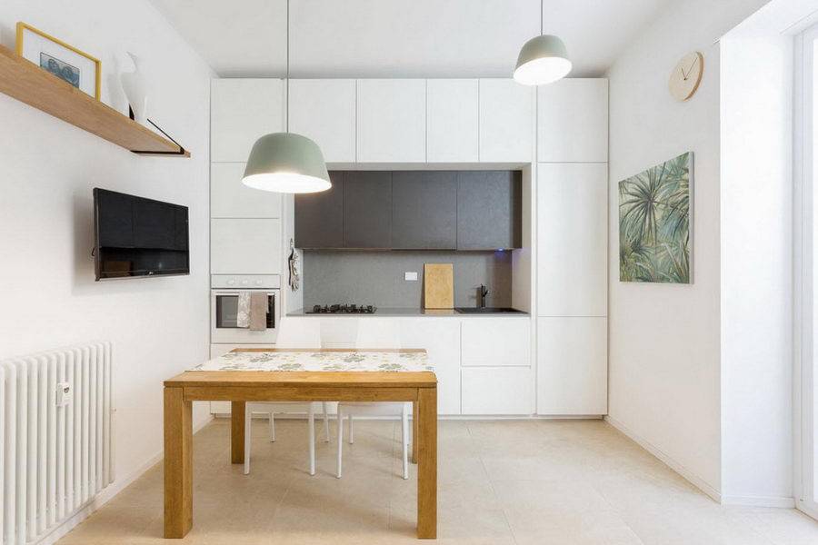 - в кухне допускается, чтобы гарнитур был выстроен до потолка, при этом если его цвет будет совпадать с цветом стен и потолка, то получится стереть всяческие границы. Вот почему, часто при обустройстве кухни в хрущевках дизайнеры маниакально используют белый цвет – результат того стоит.