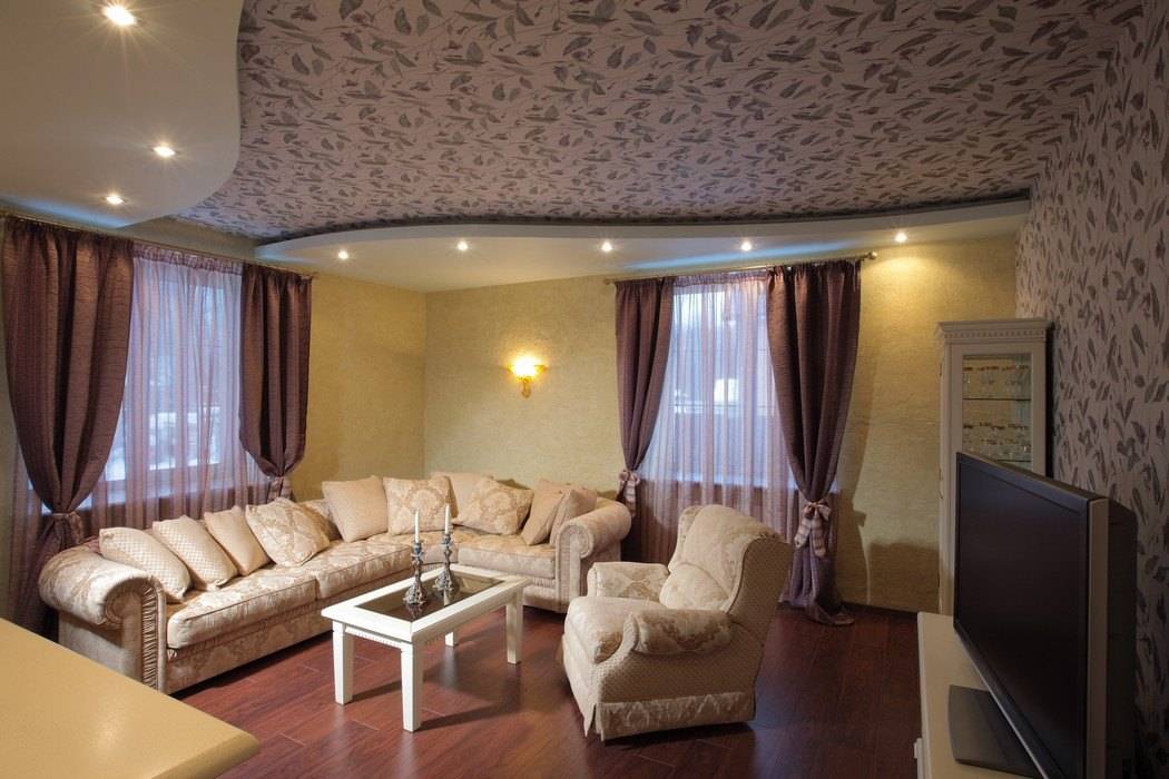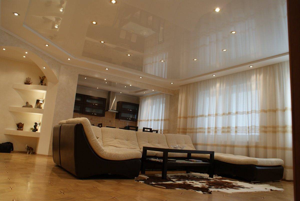 Потолки гостиной в квартире, соединенные со стеной