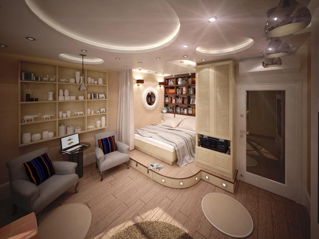 Кровать под потолком в однушке