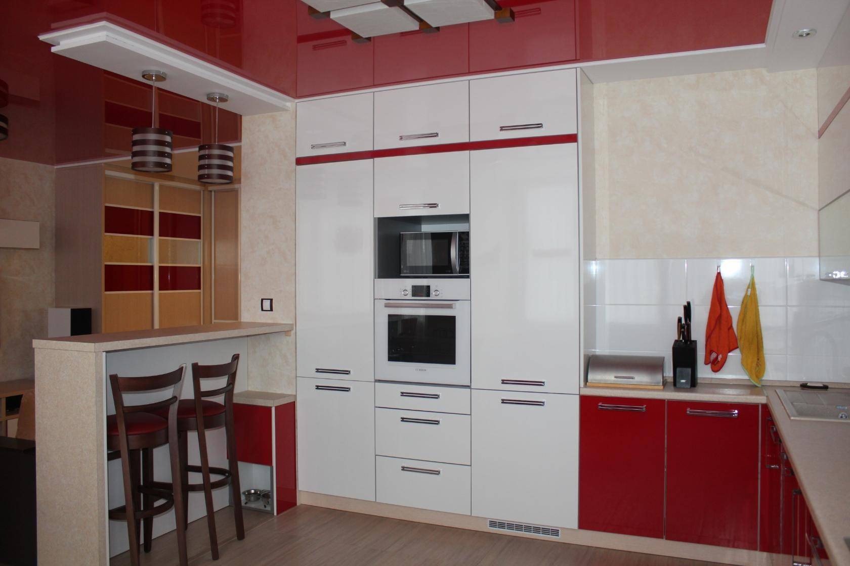 Стоит помнить, что красный потолок будет в центре внимания на такой кухне, поэтому остальной интерьер следует выполнять в более сдержанных цветах. Красный цвет пробуждает аппетит, поэтому для кухни будет весьма уместен.
