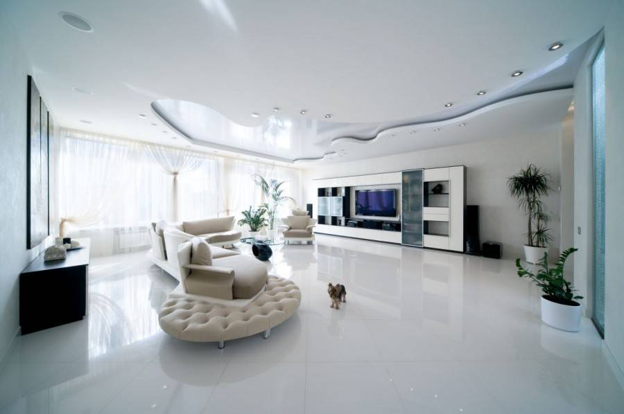 Главное, что нужно помнить, это то, что стиль и цвет потолка должен сочетаться с другими элементами интерьера. Еще нужно решить, какие функции должна выполнять ваша гостиная.