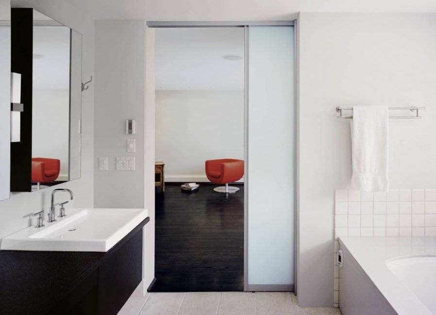 Замена распашных дверей на раздвижные конструкции позволяет сэкономить место.