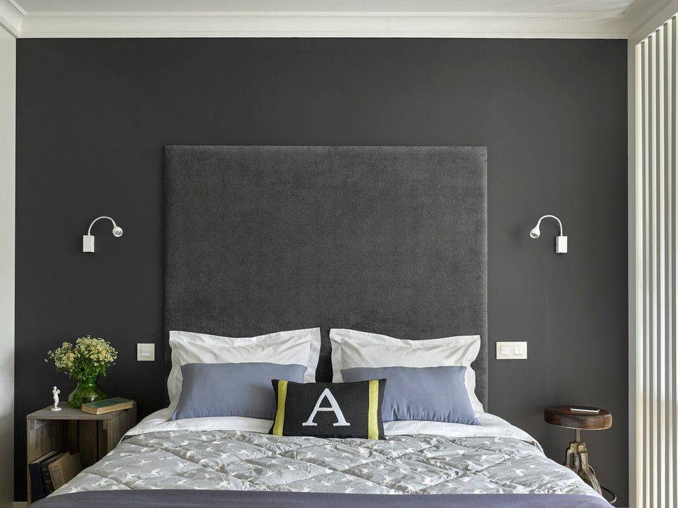 Спальня в стиле арт-деко с темными стенами