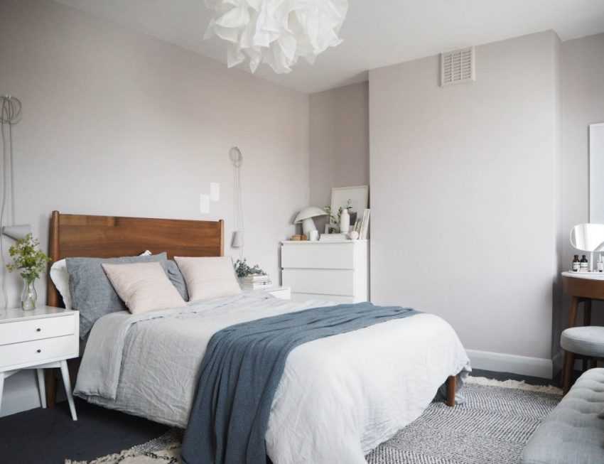 Дизайн спальни 12 метров. Шедевр из трех цветов и подголовника