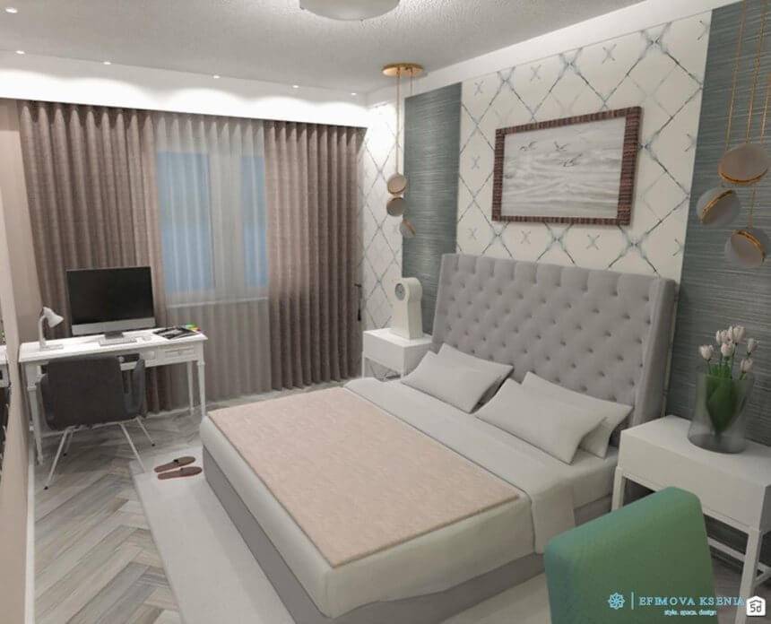 Идеально расположить столик у окна, так как там больше всего естественного света. Можно установить столик вместо одной из прикроватных тумбочек, повесить над ним зеркало и позаботиться о достаточном освещении или оформить столик как продолжение подоконника. Сидения может служить пуфик или небольшой стул, который можно задвинуть под столик.