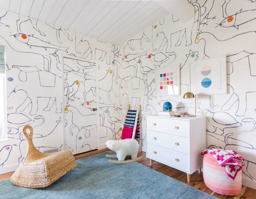 В комнатах, предназначенных для детей младшего возраста, следует использовать недорогие покрытия с возможностью быстрой замены (или использовать моющиеся обои).