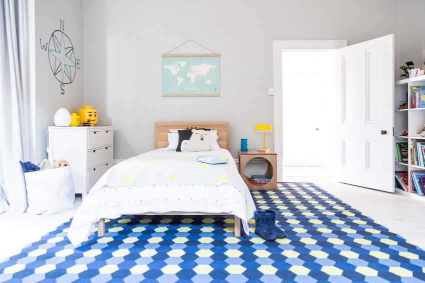Мальчугану потребуется меньше мебели, но больше свободного пространства. Юные защитники нуждаются в активных играх, большая часть которых проходит на полу. Из предметов мебели мальчику нужны лишь хорошая прочная кровать, эргономичный письменный стол со стулом и шкаф.