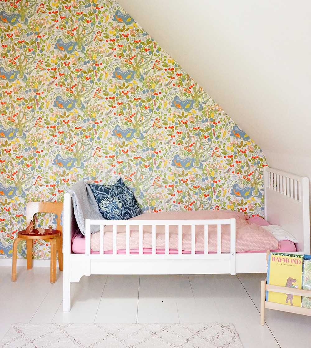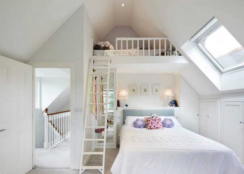 Маленькая детская комната с белыми стенами, угловатым потолком и хорошим естественным освещениемБелаямаленькая детская спальня с яркими акцентами, которые оживляют ееКрасивая и эклектичная маленькая детская комната с элементами шебби-шик